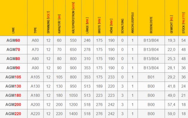 Die Panther-AGM-Batterie mit neuester Glasvliestechnik (Absorbent Glass Mat-Technologie) zeichnet sich in erster Linie durch mehr Startkraft und einer wesentlich längeren Lebensdauer aus. Sie ist auch erste Wahl bei allen modernen Fahrzeugen mit sehr hohem Energiebedarf, wie Klima, Standheizung, Soundsystem usw. Sie ist ebenfalls bestens geeignet als Verbrauerbatterie im Bootbereich, bei Wohnmobilen und Elektrofahrzeugen.