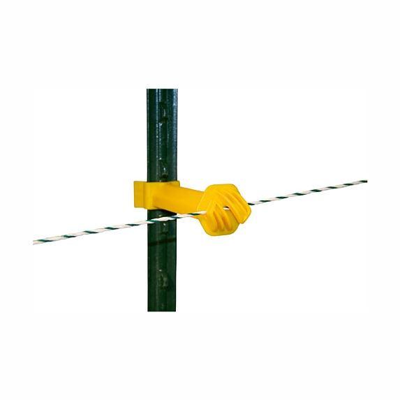 Leicht einzuschlagende, qualitativ hochwertige T-Pfosten in unterschiedlichen Längen für den langjährigen Einsatz. Über die gesamte Länge verfügen die Pfähle alle 5,5 cm über massive Noppen zum Anbringen von Zubehörteilen. Eine massive Fußplatte gibt dem Pfahl sicheren Halt. Die Pfähle sind lackiert für sehr guten Witterungsschutz. Wir empfehlen für die Eckpfosten jeweils ca. 30 cm längere T-Pfosten zu verwenden. Die Isolatoren lassen sich in der gewählten Höhe jeweils durch Aufklippen sicher am T-Pfahl fixieren.