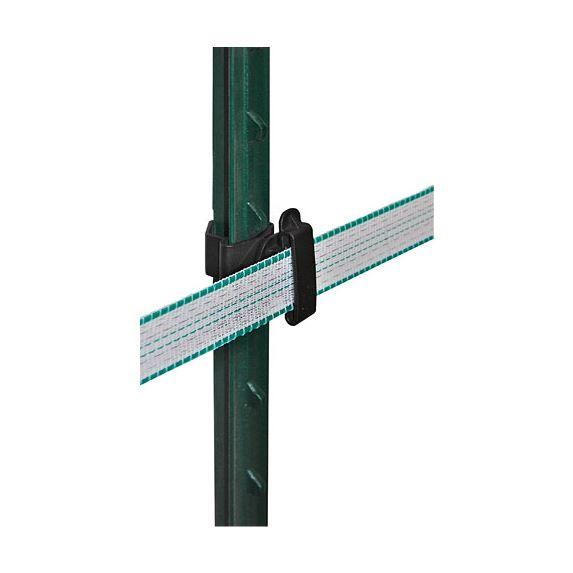 Leicht einzuschlagende, qualitativ hochwertige T-Pfosten in unterschiedlichen Längen für den langjährigen Einsatz. Über die gesamte Länge verfügen die Pfähle alle 5,5 cm über massive Noppen zum Anbringen von Zubehörteilen. Eine massive Fußplatte gibt dem Pfahl sicheren Halt. Die Pfähle sind lackiert für sehr guten Witterungsschutz. Wir empfehlen für die Eckpfosten jeweils ca. 30 cm längere T-Pfosten zu verwenden. Die Isolatoren lassen sich in der gewählten Höhe jeweils durch Aufklippen sicher am T-Pfahl fixieren.
