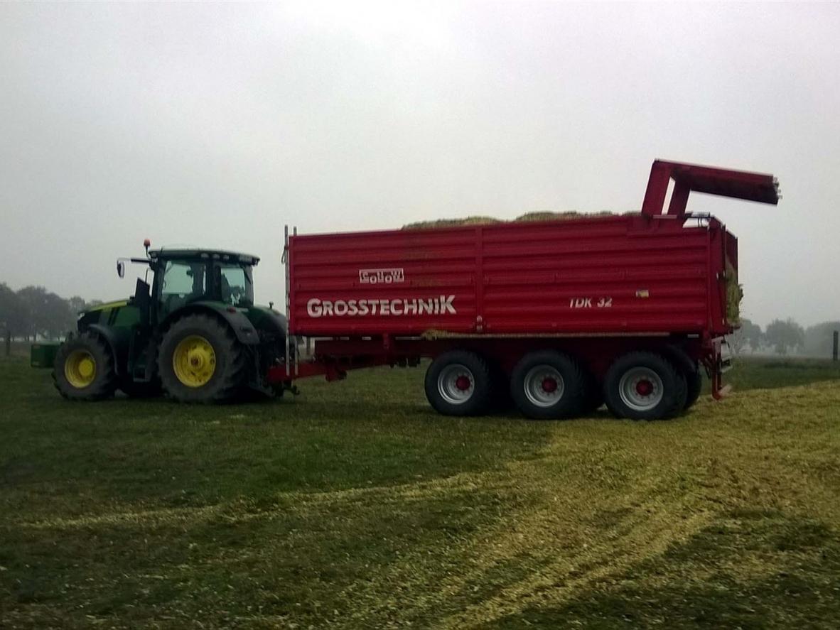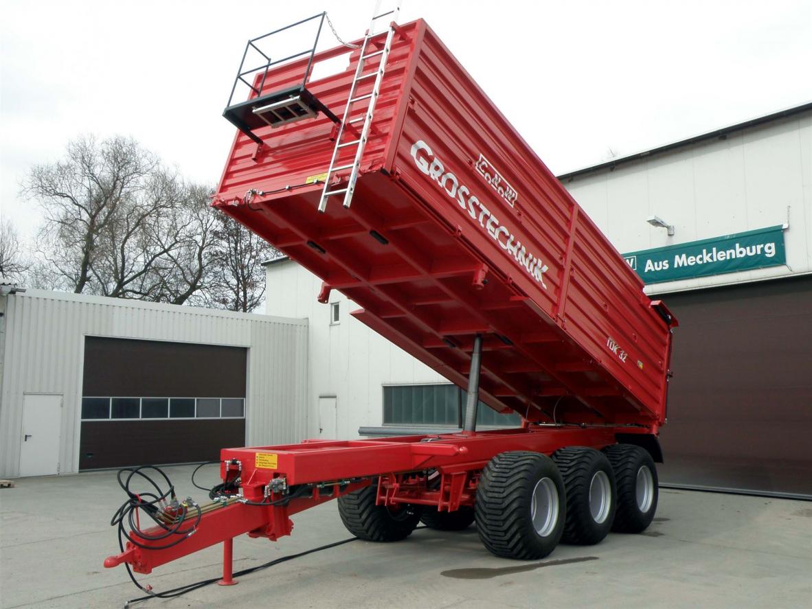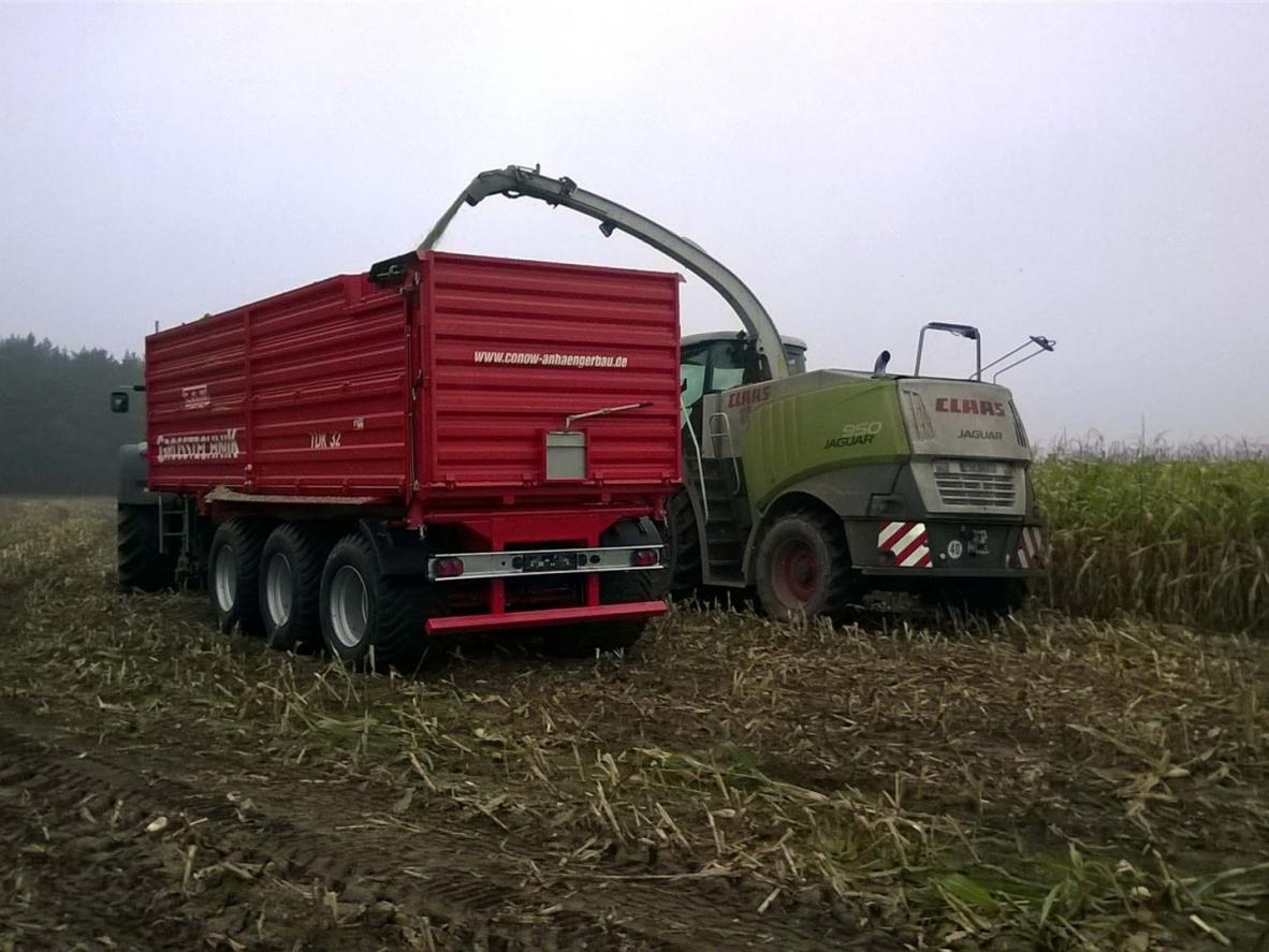 Rückwand hydraulisch ganzflächig zu öffnen (Prinzip V 9)(gegen Aufpreis Kornauslaufschieber hinten möglich)Farbgebung Aufbau: Rostschutzgrundierung und 2-Komponeten-Lack conowgrün