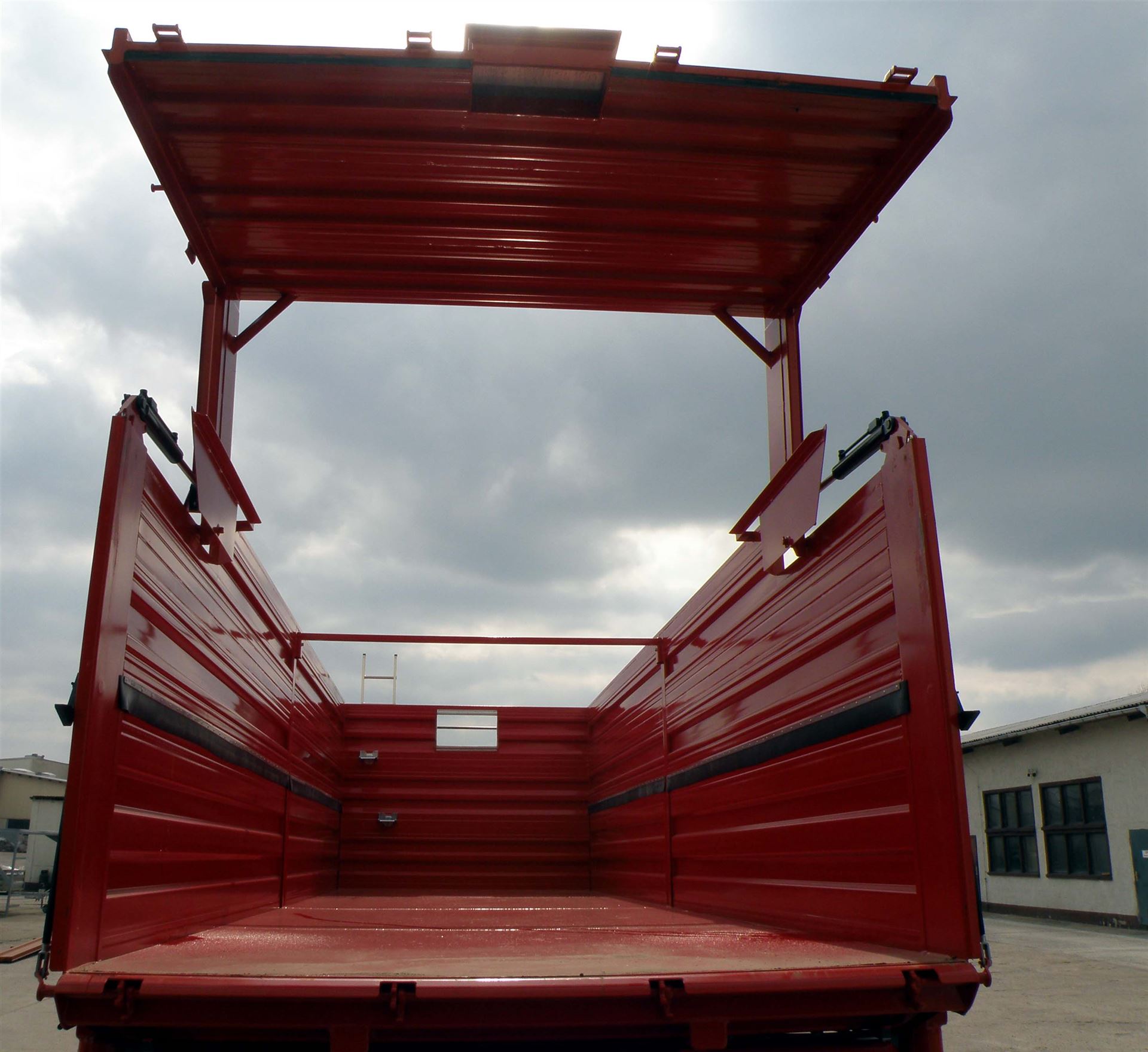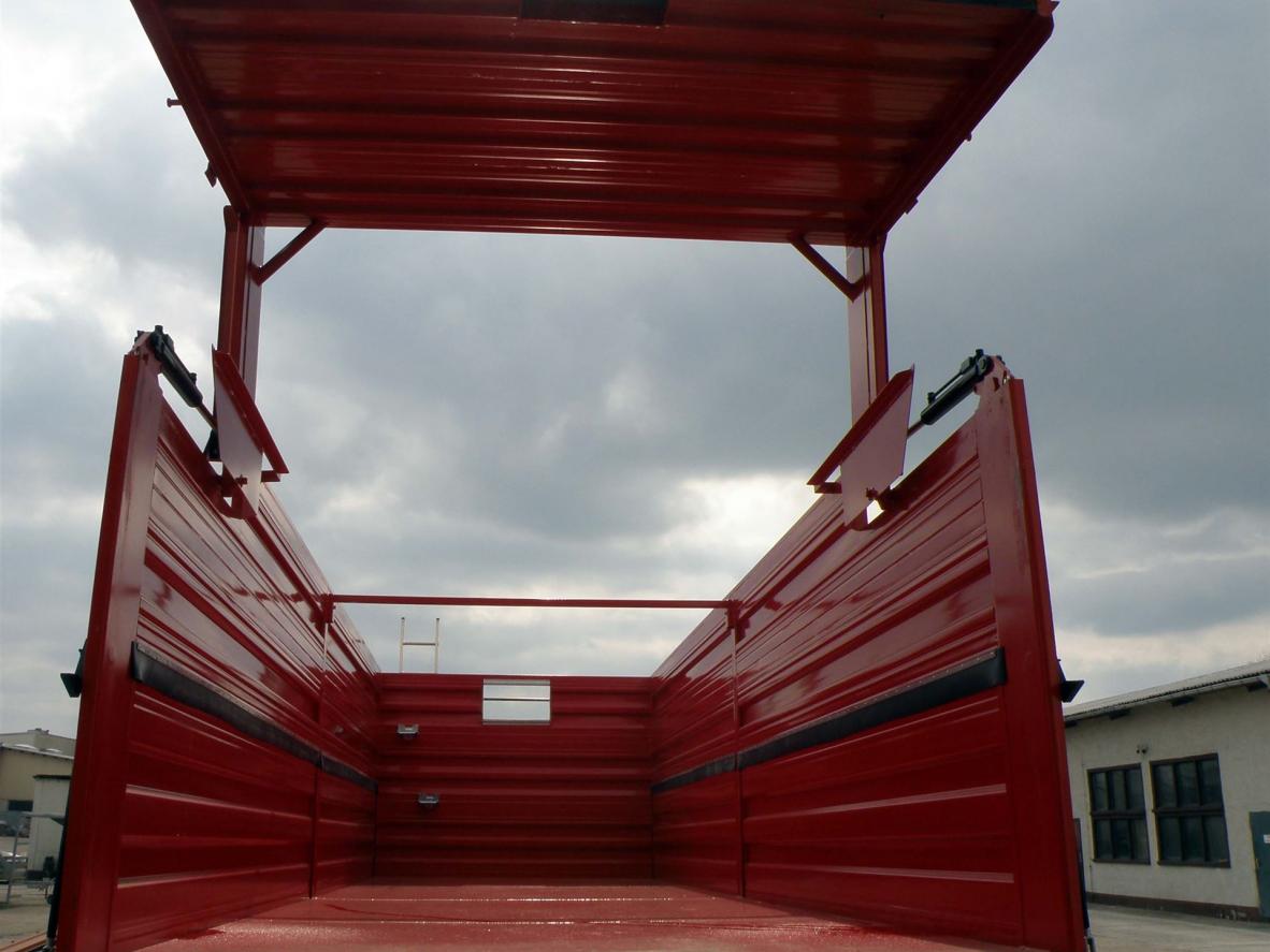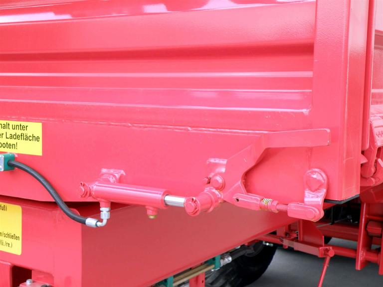 die unteren 800 mm sind als Pendelbordwände mit Mittelrunge und Zentralverriegelung (hydraulische Ausführung) gefertigt, d. h. Zentralverriegelung entweder links oder rechts nutzbar,