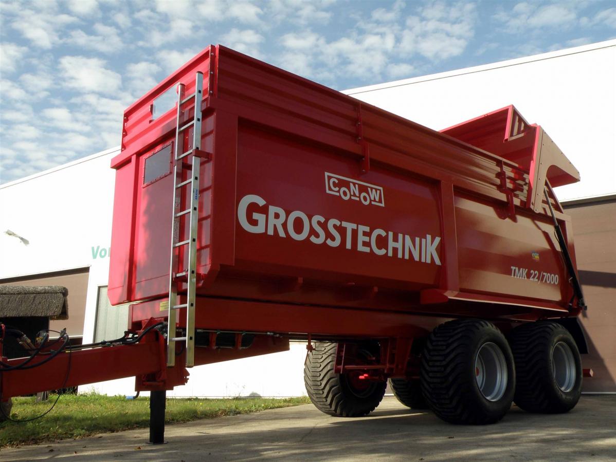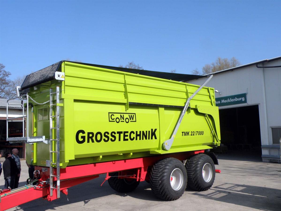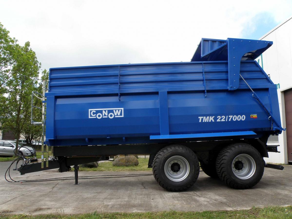 Der Muldenkipper TMK 22 / 7000 wurde unter dem Aspekt entwickelt, den Landwirten, Lohnunternehmern und Großbetrieben Fahrzeuge zur Verfügung zu stellen, welche die besten Parameter vergleichbarer Fahrzeuge in sich vereinigen. Bei der Entwicklung unserer Muldenkipper wurde wie bei allen Conow Produkten auf eine außerordentlich hohe Stabilität Wert gelegt. Die Konstruktion und die Verwendung hochwertiger Baugruppen und Materialien gewährleisten eine hohe Langlebigkeit der Muldenkipper.