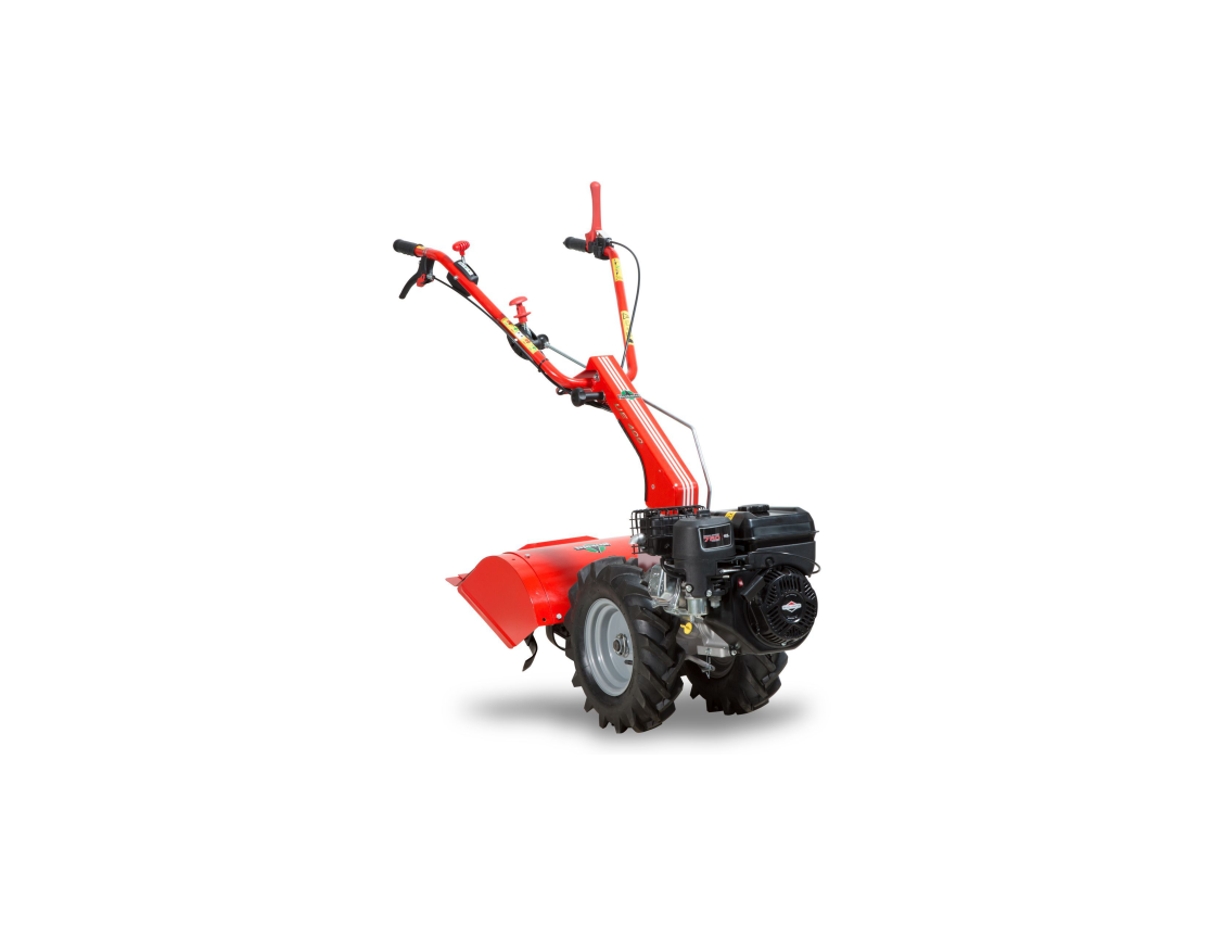 Komfortabler Universaleinachser mit komplettem Anbaugeräte-Programm für Hobby- und leichtere Profi-Einsätze sowie den Hausmeisterbereich. Höchster Bedienkomfort wird erreicht durch laufruhige Motoren, ein modernes Getriebe mit 3 Vorwärts- und 3 Rückwärtsgängen, werkzeuglosen Gerätewechsel sowie einen höhen- und seitenverstellbaren, voll drehbaren, vibrationsgedämpften Führungsholm mit Sicherheitsstopp. Bei Arbeitseinsätzen mit der großen Bereifung und schweren Geräten empfiehlt sich die Grundmaschine mit Differenzialsperre. Bei angebauter Fräseinrichtung kann der Rückwärtsgang aus Sicherheitsgründen nicht geschaltet werden..