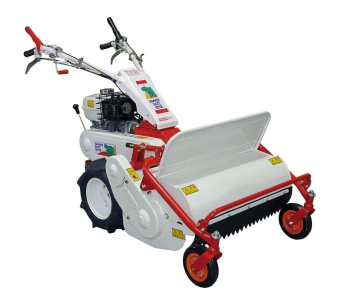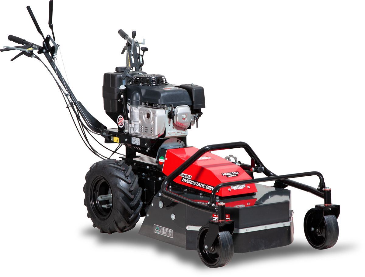 Die neue Profi-Serie für Hanglagen und Böschungen mit bis zu 100% Neigung lässt sich durch die SYNCRODRIVE-Technologie, zwei unabhängige hydrostatische Motoren, einfach und bequem durch unwegsames Gelände manövrieren. Durch eine am Rahmen integrierte Stütze und Schnellverschluss lassen sich die serienmäßigen Räder mit Ackerstollen durch geländegängige Stahlräder ersetzen, die für zusätzliche Traktion sorgen. Zusätzlich ist das Modell mit automatischer Feststellbremse und Doppelmesser ausgestattet. Der Führungsholm ist zudem voll verstellbar und für den Transport klappbar.