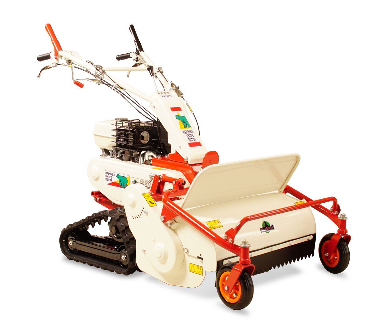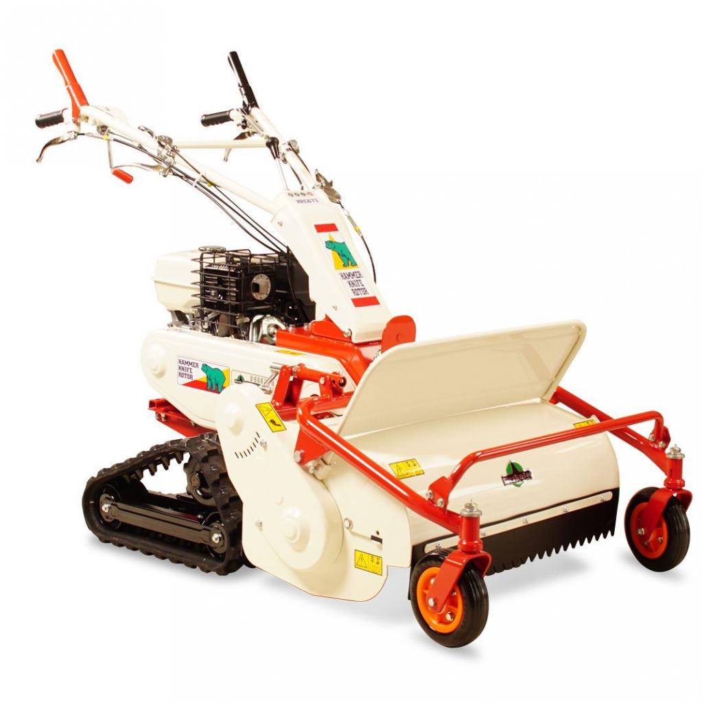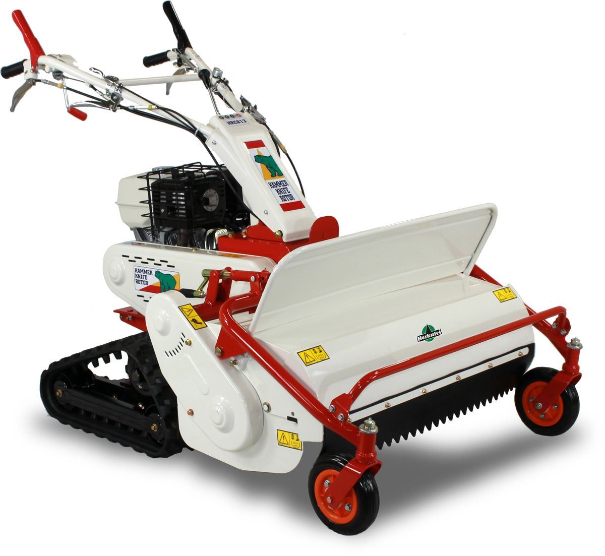 Robust und zuverlässig - für großen Flächeneinsatz große Schnittbreite Y-Messer für feinste Zerkleinerung Das Einsatzspektrum der Herkules Schlegelmäher reicht von der Baumschonung, dichtem Unterholz oder Obstbaumwiesen bis zu extensiv gepflegten Grasflächen. Die verstellbare Frontschürze am Schlegelmähwerk ermöglicht den Einsatz vom Gestrüppmäher bis hin zum Mulchschlegler und erweitert so das Arbeitsspektrum der Maschine. Das spezielle Ackerstollenprofil gibt dem Mäher dabei zusätzlichen Seitenhalt. Die Kraft des professionellen Honda - Motors wird über ein Hydrostatgetriebe übertragen. Die Schlegelwelle mit Y-Messern wird über eine Keilriemenuntersetzung angetrieben. Die stufenlose Schnitthöhenverstellung erfolgt über eine leichtgängige Spindel am Mähdeck.