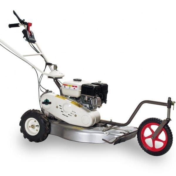 Der ideale Mäher bei hohem Gras und Ausputzarbeiten leicht und wendig großes Führungsrad 3D-Holmverstellung. Der besonders leichte und handliche SH 50 eignet sich durch seine hohe Wendigkeit hervorragend für den Einsatz auf verwinkelten Flächen. Der niedrige Frontaufbau erlaubt das Mähen unter Büschen und an schwer zugänglichen Stellen. Bei der Bauweise des SH 50 wurde der größte Wert darauf gelegt, dass das Getriebe sowie das Messer über starke Keilriemen angetrieben werden und nicht direkt über die Kurbelwelle des Motors. Das robuste Messer besteht aus speziell gehärtetem Stahl. Der Mäher ist für den Einsatz auf Hochgraswiesen und extensiv gepflegten Flächen ideal geeignet. Der SH 50 wird von einem professionellen Honda-Motor mit OHV-Technologie angetrieben. Sein Getriebe verfügt über 2 Vorwärtsgänge und Radfreilauf. Die stufenlose Schnitthöhenverstellung am großen Führungsrad ermöglicht bei unterschiedlichsten Voraussetzungen immer ein optimales Mähergebnis.
