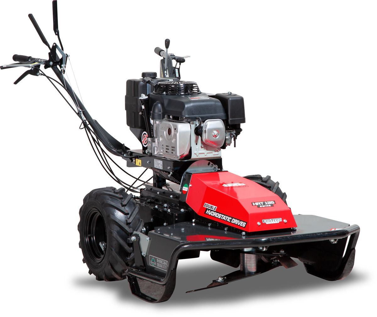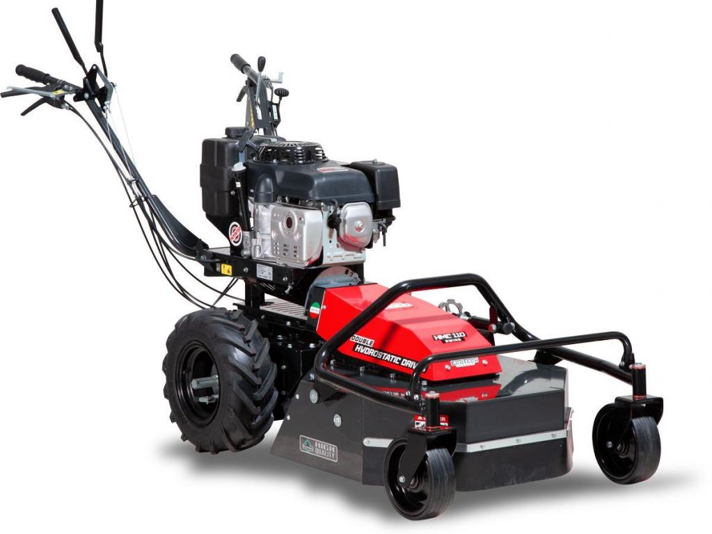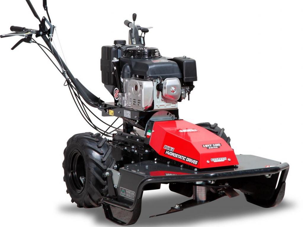 Die neue Profi-Serie für Hanglagen und Böschungen mit bis zu 100% Neigung lässt sich durch die SYNCRODRIVE-Technologie, zwei unabhängige hydrostatische Motoren, einfach und bequem durch unwegsames Gelände manövrieren. Durch eine am Rahmen integrierte Stütze und Schnellverschluss lassen sich die serienmäßigen Räder mit Ackerstollen durch geländegängige Stahlräder ersetzen, die für zusätzliche Traktion sorgen. Zusätzlich ist das Modell mit automatischer Feststellbremse und Doppelmesser ausgestattet. Der Führungsholm ist zudem voll verstellbar und für den Transport klappbar.