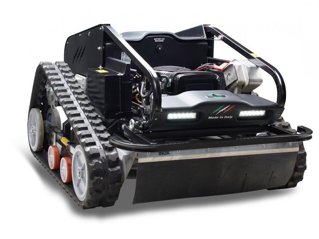 Herkules Raptor – Hybrid Raupengestrüppmäher. Der Herkules Raptor kann, dank der kompakten Bauweise, dem Elektro-Hybrid-Raupenantrieb und einem niedrigen Schwerpunkt, in extremen Hanglagen und Böschungen mit bis zu 50°/120% Steigung eingesetzt werden. Dank der intuitiven Profi-Fernsteuerung kann er in einem Umkreis von ca. 500m manövriert werden, ohne dass der Anwender sich selbst im Arbeitsbereich aufhalten muss. Eine hohe Flächenleistung und seine extreme Wendigkeit (Zero Turn) machen ihn zu einem All-rounder in vielen Landschaftsbereichen, wie z.B. Böschungen, Solarparks, Industrieanlagen und Wasserrückhaltebecken. Das Sichelmähwerk mit einer Arbeitsbreite von 80 cm und Pendelklingen zerkleinert das Schnittgut optimal und durch den Heckauswurf wird ein sauberes Schnittergebnis erzielt. Der Raupenan-trieb gewährleistet die höchst mögliche Traktion und der Boden wird geschont. Die Schnitthöhe ist von 35 – 130 mm einstellbar. Der Elektro-Hybrid-Antrieb ermöglicht das Fahren des Herkules Raptor zur oder von der zu mä-henden Fläche ohne Starten des Benzinmotors. Angeboten wird der Herkules Raptor mit zwei wirtschaftlichen und leistungsstarken Benzinmotoren.