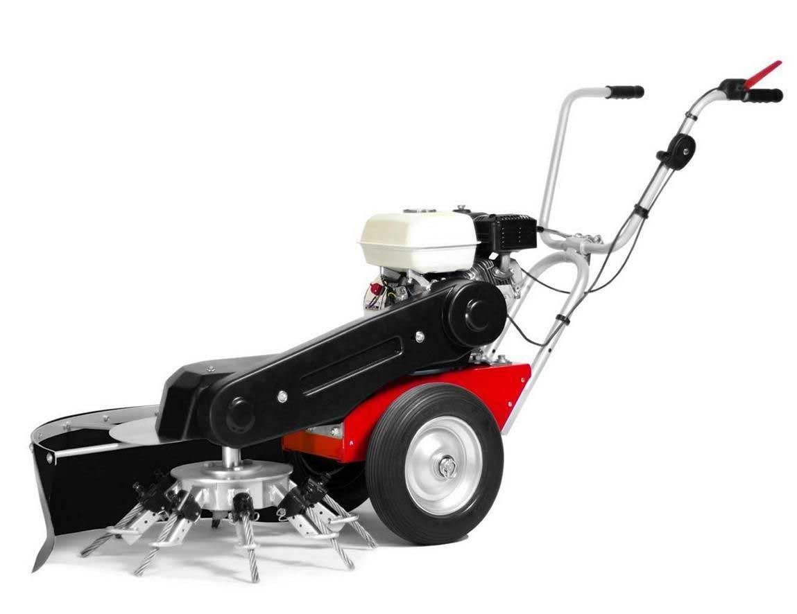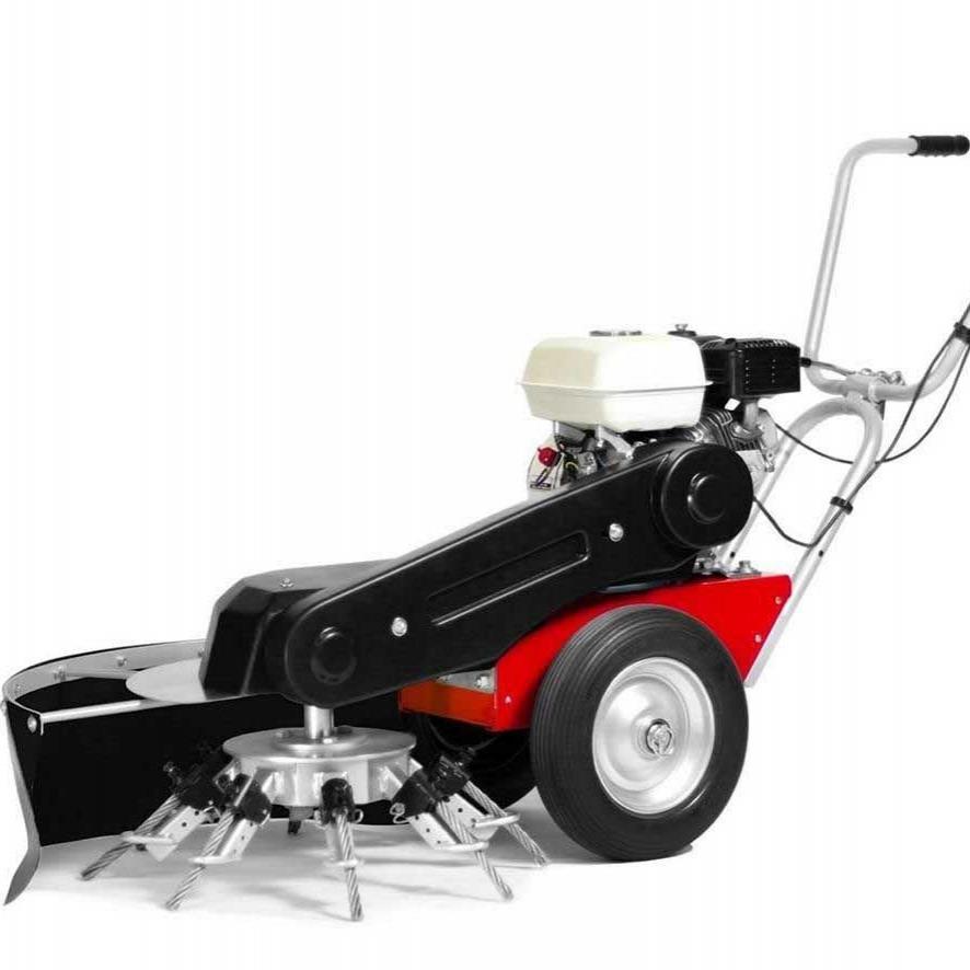 Die Herkules Wildkrautbürste mit sechs Drahtzöpfen entfernt Wildkraut von befestigten Flächen - ganz ohne chemische Hilfsmittel oder thermische Behandlung. Sie verfügt über extragroße Räder, stabilen Spritzschutz und ein spezielles Dämpfungssystem des Antriebs für besonders komfortables Arbeiten. Die Bürste ist für bequemes Säubern an Kanten seitlich schwenkbar. Die neue Version wird mit klappbarem Schutz für kantengenaues Arbeiten geliefert. Die Version HX ist mit sehr kraftvollem Honda Motor GXV 160 OHV ausgestattet. Die OHV Bauart erhöht die Verbrennungseffizienz und ermöglicht leichtes Starten durch ein Dekompressionssystem. Der Motor arbeitet mit weniger Vibrationen und geringerem Geräuschniveau bei niedrigem Kraftstoff- und Ölverbauch.
