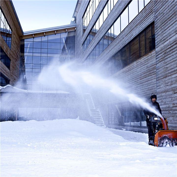 Dank des zweistufigen Schnecken-/Wurfgebläse-Systems, einer Elektrostart-Funktion, eines Antriebs mit variabler Drehzahl und eines breiten Reifenprofils sind Sie auch anspruchsvollstem Winterwetter gewachsen, bei allen Schneebedingungen in Ihrer Region.
