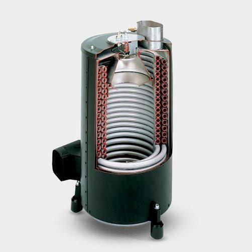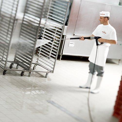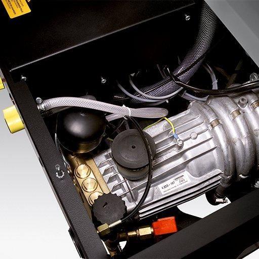 Reinigungsanlage mit einem ungewöhnlich hohem Sicherheitskomfort durch die integrierte, automatische Druckentlastung, eine Abgastemperatur-Überwachung, Trockenlaufschutz im Schwimmerkasten.