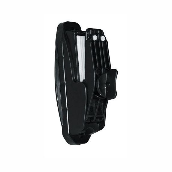 Die beidseitige lamellenartige Gummieinlage bietet zusammen mit dem patentierten Funktionsprinzip "Zange" einen zuverlässigen und schonenden Halt des Bandes. Die Einlage bewahrt das Band vor dem Durchrutschen und schützt es vor Beschädigungen. Die Verzahnung oberhalb der Gummieinlage verhindert das Herausrutschen des Bandes.