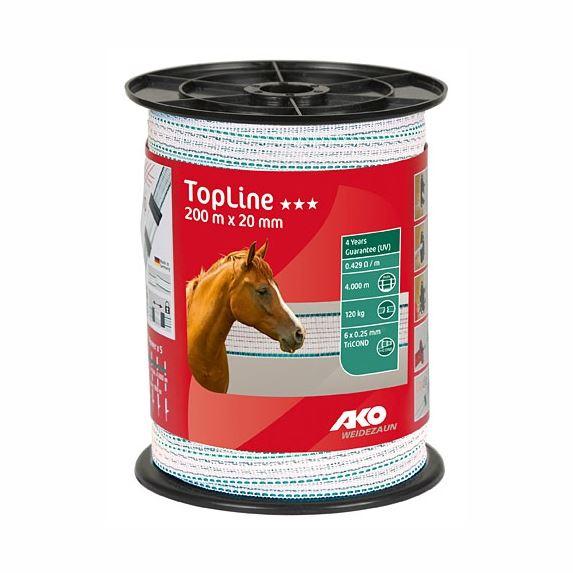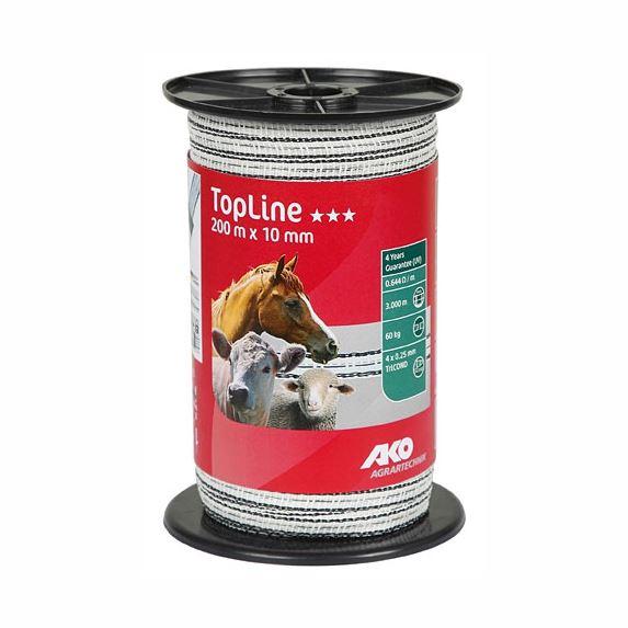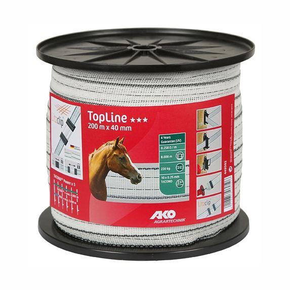 AKO TopLine PLUS garantiert hervorragende Leitfähigkeit und sehr lange Haltbarkeit bei mittleren bis langen Zaunanlagen. Im Vergleich zu nicht rostenden Drähten gleicher Stärke besitzen Bänder, Litzen und Seile der TopLine PLUS Linie, durch Verwendung unseres neuen Leitermaterials TriCOND, eine 5 x höhere Leitfähigkeit, d.h. mit TriCOND können Sie 5 x längere Zäune betreiben bzw. "transportieren" 5 x mehr Strom zum Ort der Tierberührung = 5 x mehr Sicherheit