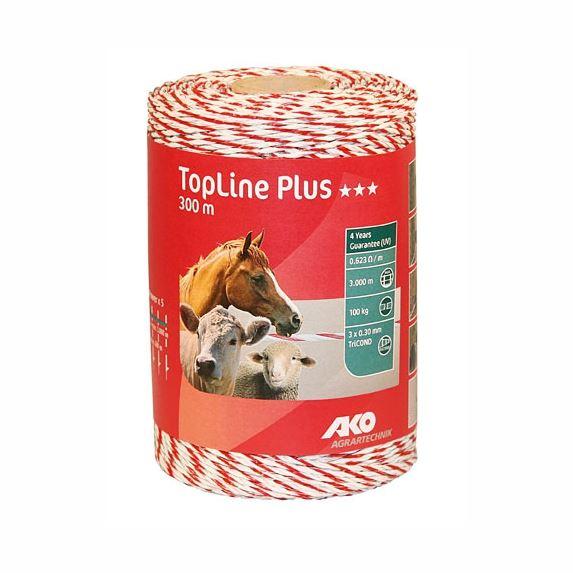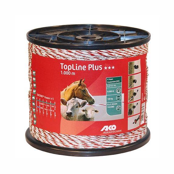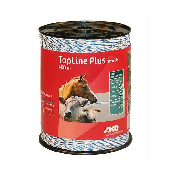 AKO TopLine PLUS garantiert hervorragende Leitfähigkeit und sehr lange Haltbarkeit bei mittleren bis langen Zaunanlagen. Im Vergleich zu nicht rostenden Drähten gleicher Stärke besitzen Bänder, Litzen und Seile der TopLine PLUS Linie, durch Verwendung unser neues Leitermaterial TriCOND, eine 5 x höhere Leitfähigkeit, d.h. mit TriCOND können Sie 5 x längere Zäune betreiben bzw. "transportieren" 5 x mehr Strom zum Ort der Tierberührung = 5 x mehr Sicherheit