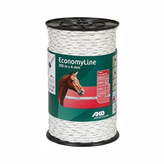 Einzigartiges Seil, das durch seine Robustheit, Effizienz und gute Sichtbarkeit besticht. Die kontinuierliche Re-Elektrifizierung der beiden dicken, hochleitenden Metalldrähte bildet die Grundlage für höchste Zuverlässigkeit. Die innenliegenden PE-Monofilfäden sind UV beständig und sehr langlebig. Ideal für Pferde- und Rinderweiden.