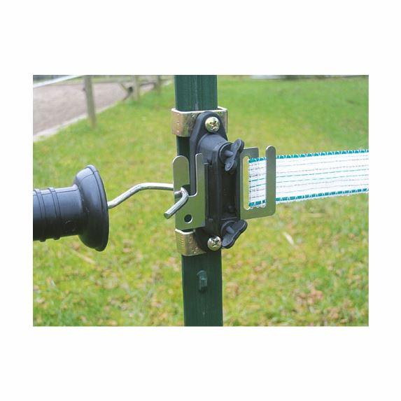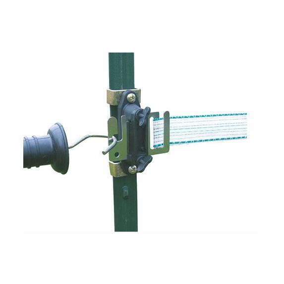 robuster Bandisolator mit Anschlussplatte aus Edelstahl für Torgriff und Anschluss an das Weidezaungerät (Lieferung ohne Torgriff)