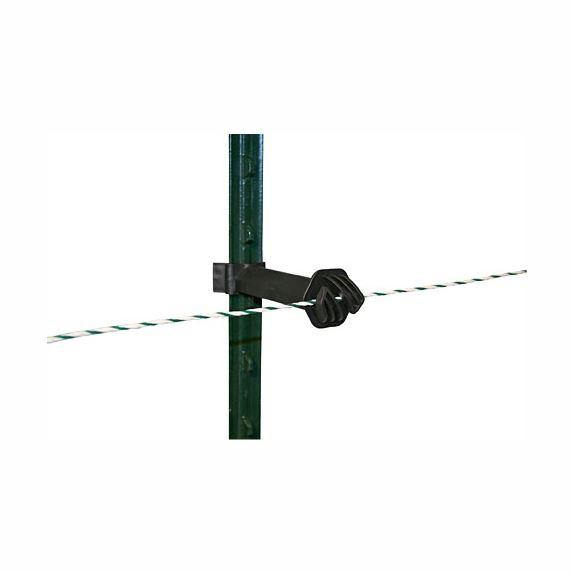Leicht einzuschlagende, qualitativ hochwertige T-Pfosten in unterschiedlichen Längen für den langjährigen Einsatz. Über die gesamte Länge verfügen die Pfähle alle 5,5 cm über massive Noppen zum Anbringen von Zubehörteilen. Eine massive Fußplatte gibt dem Pfahl sicheren Halt. Die Pfähle sind lackiert für sehr guten Witterungsschutz. Wir empfehlen für die Eckpfosten jeweils ca. 30 cm längere T-Pfosten zu verwenden. Die Isolatoren lassen sich in der gewählten Höhe jeweils durch Aufklippen sicher am T-Pfahl fixieren.