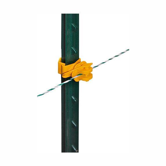 Leicht einzuschlagende, qualitativ hochwertige T-Pfosten in unterschiedlichen Längen für den langjährigen Einsatz. Über die gesamte Länge verfügen die Pfähle alle 5,5 cm über massive Noppen zum Anbringen von Zubehörteilen. Eine massive Fußplatte gibt dem Pfahl sicheren Halt. Die Pfähle sind lackiert für sehr guten Witterungsschutz. Wir empfehlen für die Eckpfosten jeweils ca. 30 cm längere T-Pfosten zu verwenden. Die Isolatoren lassen sich in der gewählten Höhe jeweils durch Aufklippen sicher am T-Pfahl fixieren.