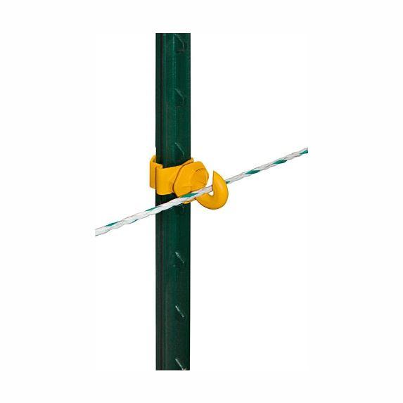 Leicht einzuschlagende, qualitativ hochwertige T-Pfosten in unterschiedlichen Längen für den langjährigen Einsatz. Über die gesamte Länge verfügen die Pfähle alle 5,5 cm über massive Noppen zum Anbringen von Zubehörteilen. Eine massive Fußplatte gibt dem Pfahl sicheren Halt. Die Pfähle sind lackiert für sehr guten Witterungsschutz. Wir empfehlen für die Eckpfosten jeweils ca. 30 cm längere T-Pfosten zu verwenden. Die Isolatoren lassen sich in der gewählten Höhe jeweils durch Aufklippen sicher am T-Pfahl fixieren.