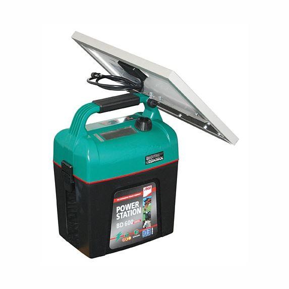 kompaktes, mobiles und sehr effizientes Gerät mit integriertem Solarmodul für kleinere Zäune mit wenig Bewuchs